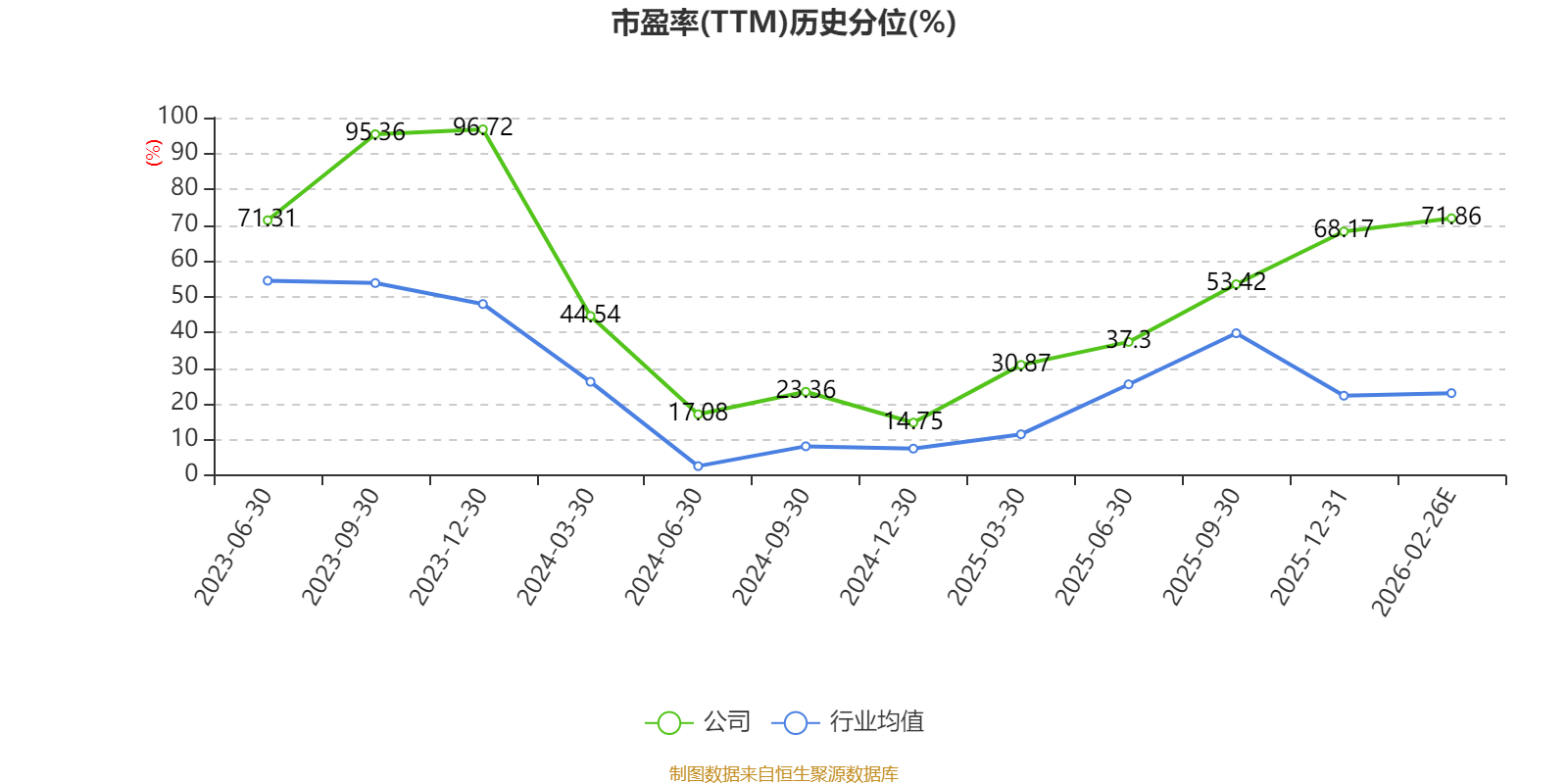 市盈率、市净率为负时,不显示当期分位数,会导致折线图中断。